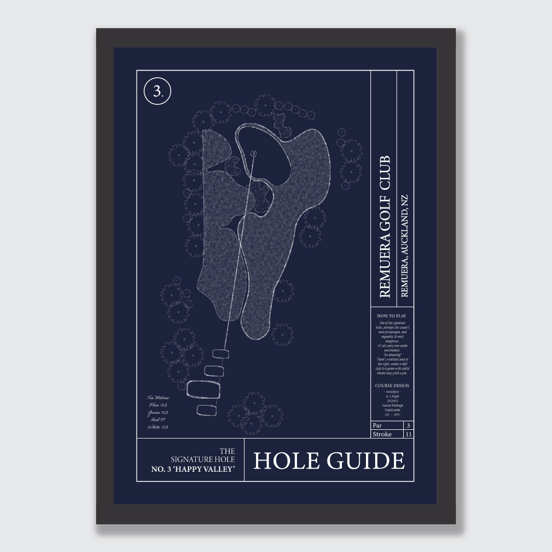 From our 'Hole Guide' series, this print focuses on the brilliant 3rd hole 'Happy Valley' at Remuera Golf Club in Auckland.